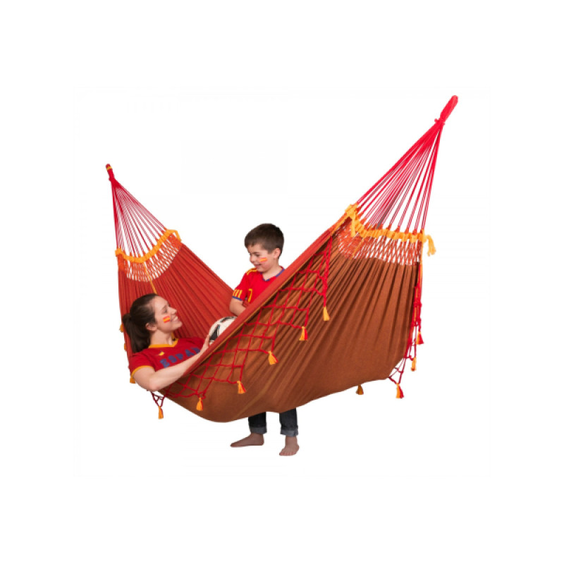 La Siesta Copa высококачественный двойной гамак изготовленный из чистого органического хлопка. Он сочетает в себе традиционное бразильское мастерство с качеством и исключительным комфортом. COPA — это дань Бразилии и футболу, и она доступна в четырех выбранных цветах команды.