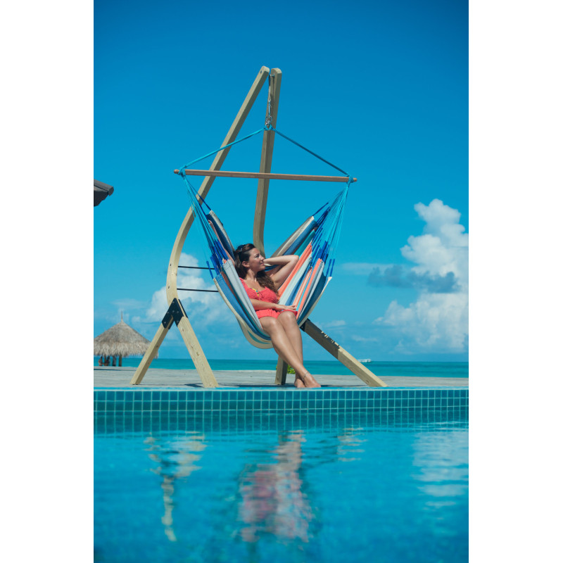 Cтойка для подвесных стульев-гамаков от колумбийской компании La Siesta, позволит переставить стул-гамак в удобное для вас место.