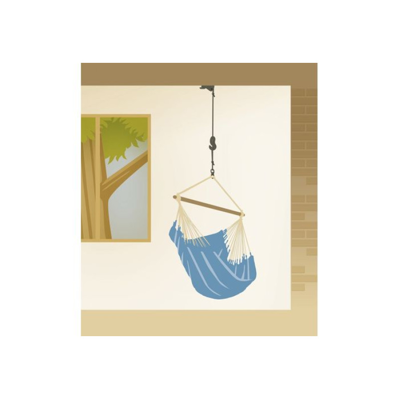 Для установки подвесного стула дома, Вам понадобится лишь просверлить отверстия и закрепить шурупами крепление на потолке. Трехточечный крюк-крепление предоставит наилучшую фиксацию и равномерно распределит нагрузку по поверхности.
