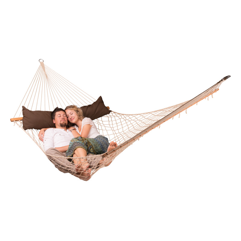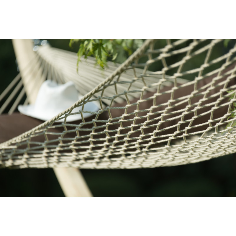 Гамак семейный с рейками La Siesta California выполнен в североамериканском традиционном стиле. Перекладины созданы из прочной древесины, изготовляемой из сосны пинии, проходящей несколько этапов обработки. Сетка, из которой выполнено место для лежания — мягкая, не вдавливается в кожу. Гамак оснащен съемной подушкой для более комфортного отдыха. Модель характеризуется правильным распределением веса за счет большого количества шнуров, соединяющих лежак и планку.
