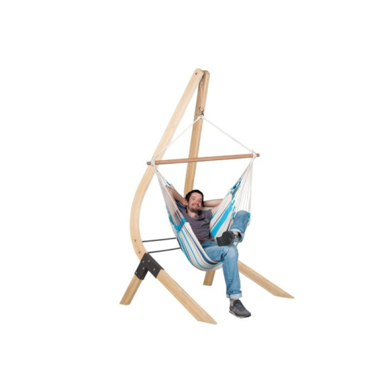 Красочные летние дизайны сочетают в себе насыщенные краски и полосатые принты, которые выглядят просто потрясающе в любой обстановке. В данной серии вы найдете представлены модель lime в зелено-желтых полосках и модель maarindne в оранжево-желтых полосках. Материалы, устойчивые к погодным условиям Использование погодоустойчивого материала HamacTex® позволяет оставлять гамак на улице круглый год – он не боится влаги, ветра и прямых солнечный лучей. Так же как и хлопок, HamacTex® приятный на ощупь и очень прочный в использовании. Он выдерживает множество циклов в стиральной машине, отлично сохраняя свою форму и текстуру. Использование натуральных стойких красителей обеспечивает не только безопасность для вашей кожи, но и сохранения новизны изделия на долгие годы. Механизм крепления Использование специально разработанного вертлюга обеспечивает отменную прочность изделию – стул-гамак прекрасно выдерживает нагрузку до 10 кг. При этом, вертлюг позволяет вращать гамак на 360 градусов, при этом избегая запутывания шнуров. Особо устойчивая техника плетения Предназначенное для лежания пространство имеет по краям плотную ткань особой прочности. Множество подвесных канатов Дополнительный комфорт в результате большого количества подвесных канатов: с помощью большого количества канатов, которые соединяют сукно гамака с системой для подвешивания, оптимально распределяется вес тела в гамаке, что обеспечивает неповторимое чувство лёгкости. LA SIESTA предлагает стойки для подвесных гамаков, подвесных гамаков с рейками и подвесных стульев. Стойки позволяют при необходимости быстро и легко передвинуть гамак, например, из тени на солнце. Фирма LA SIESTA предлагает различные модели стоек из дерева и металла. Скандинавская ель, погодостойкая Так как скандинавская ель растёт относительно медленно, она имеет необычайно плотные волокна. Это делает древесину особенно крепкой. Благодаря этому скандинавская ель идеально отвечает особым требованиям на прочность, предъявляемым к стойкам для подвесных гамаков. Применяемую для подвесных стоек ель погружают в специальный раствор для повышения качества погодостойкости – поэтому стойки можно спокойно оставлять снаружи под солнцем. Ответственное лесохозяйство ЗнакFSC® гарантирует, что древесина была выращена и прошла различные процессы обработки до полной её готовности в соответствии с жёсткими требованиями лесного попечительского совета (Forest Stewardship Council). Лицензионный код FSC®:CO12427