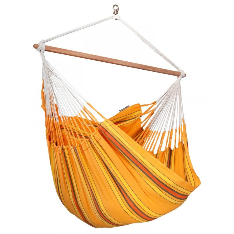 Разработанный и запатентованный фирмой La Siesta встроенный вертлюг обеспечивает дополнительный комфорт и безопасность. Он позволяет вращаться по оси. При этом шнуры для подвешивания не переплетаются.