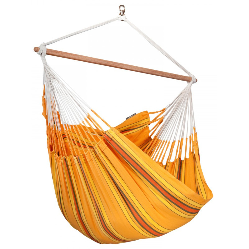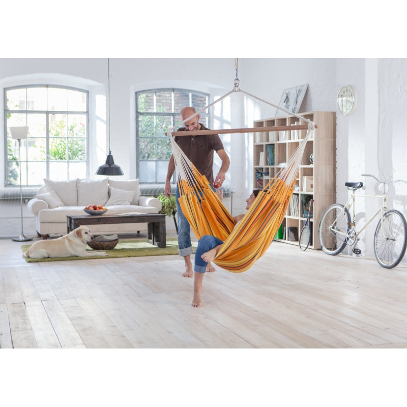 Разработанный и запатентованный фирмой La Siesta встроенный вертлюг обеспечивает дополнительный комфорт и безопасность. Он позволяет вращаться по оси. При этом шнуры для подвешивания не переплетаются.