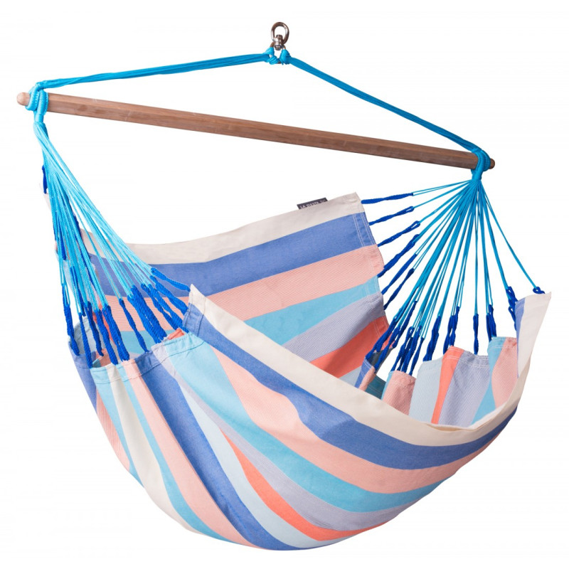 Разработанный и запатентованный фирмой La Siesta встроенный вертлюг обеспечивает дополнительный комфорт и безопасность. Он позволяет вращаться по оси. При этом шнуры для подвешивания не переплетаются.