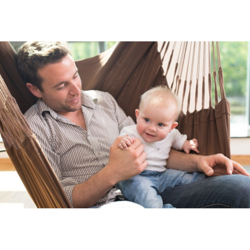 Прочный механизм крепления отлично выдерживает максимальный вес в 160 кг, поэтому вы можете отдыхать не только в одиночестве, но и с близким человеком. К тому, специальный вертлюг, разработанный компанией La Siesta, позволяет вращать модель на 360 градусов, не запутывая шнуры. Множество прочных канатов гарантируют полную безопасность крепления сукна к крепительному механизму.
