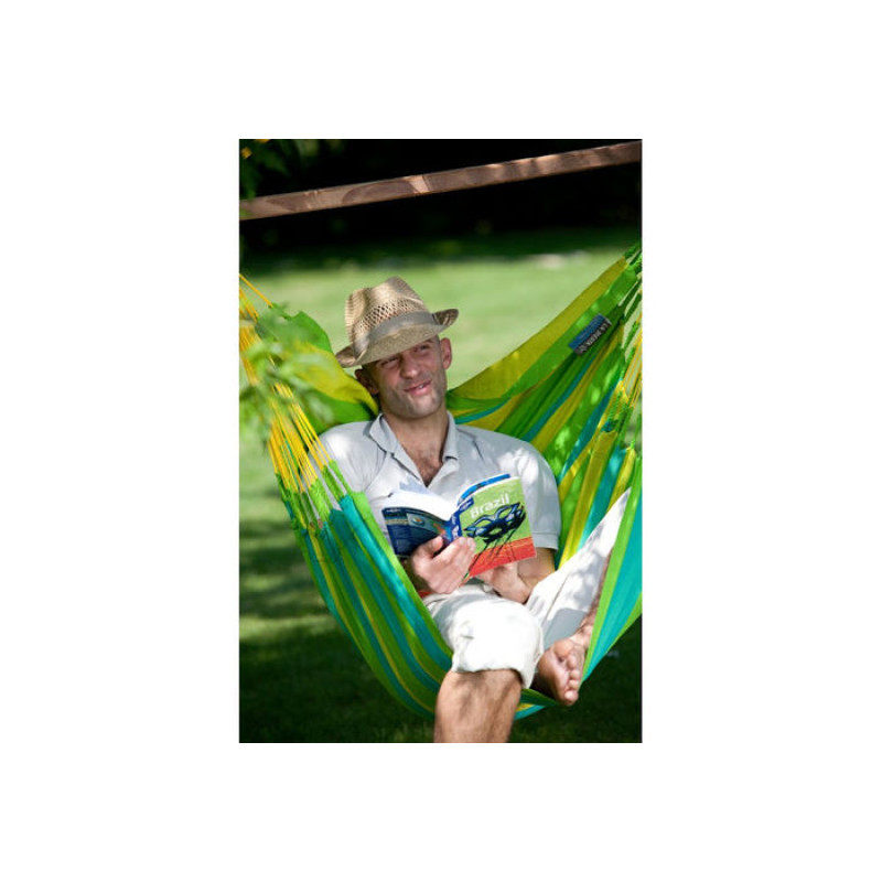 Использование погодоустойчивого материала HamacTex позволяет оставлять гамак на улице круглый год – он не боится влаги, ветра и прямых солнечный лучей. Так же, как и хлопок, HamacTex приятный на ощупь и очень прочный в использовании. Он выдерживает множество циклов в стиральной машине, отлично сохраняя свою форму и текстуру.