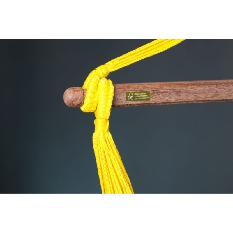 Использование специально разработанного вертлюга обеспечивает отменную прочность изделию – стул-гамак прекрасно выдерживает нагрузку до 10 кг. При этом, вертлюг позволяет вращать гамак на 360 градусов, при этом избегая запутывания шнуров.