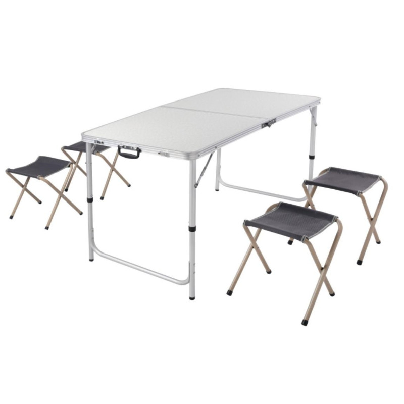 Характеристки:Тип изделия: стол с табуретамиМатериал столешницы: МДФМатериал каркаса дуг стола: алюминийДиаметр ножек стола (мм): 25Максимальная нагрузка (кг): ~ 20Размеры стола (см): 120х60Высота стола (см): 55-68Материал дуг каркаса табурета: алюминийРазмер табурета (мм): 280х310х340Диаметр ножек табурета (мм): 25Максимальная нагрузка на табурет (кг): 120Общий вес комплекта (кг): 7,7