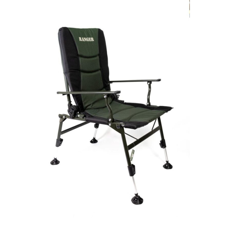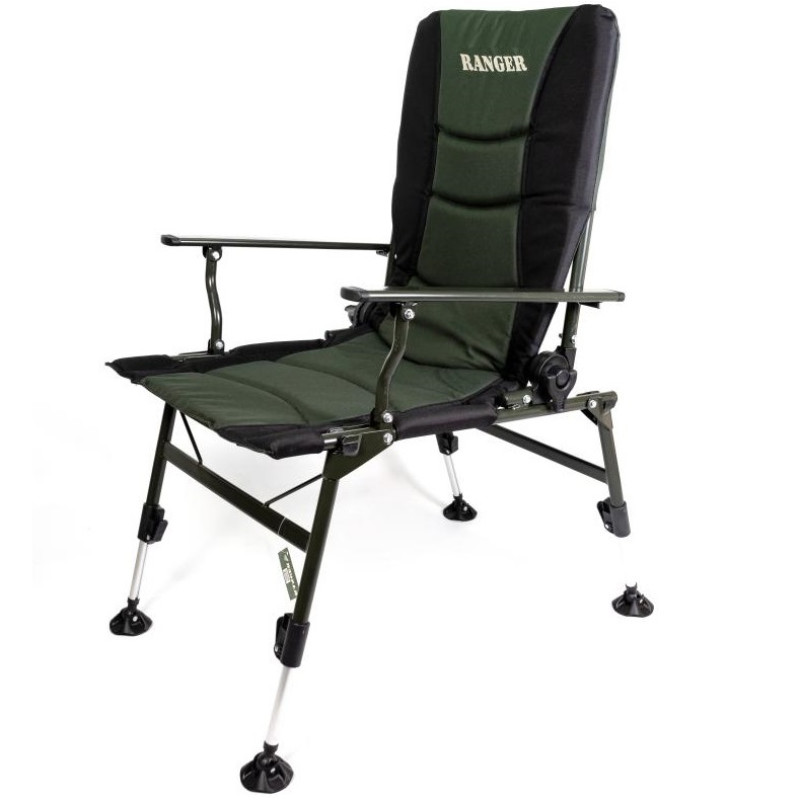 Карповое кресло Ranger Сombat SL-108 — рыбаки оценят данную модель, так как можно отрегулировать по высоте и наклону каждую ножку. На неровных поверхностях это очень актуально. Также спинку можно регулировать по желанию, опускать до положения лёжа, и использовать кресло как раскладушку, тем более, что мягкий наполнитель создаёт приятные ощущения во время отдыха.Кресло крепится болтами, что позволяет без труда повесить на подлокотниках всевозможные обвесы для рыбалки. А ещё таким же образом легко снять ткань для стирки. Нижняя часть спереди усилена дополнительными трубками, что позволяет выдерживать большие нагрузки веса людей.Каркас изготовлен из стальных трубок диаметром 19-22 мм. Пятаки на ножках — 7 см, Спинка регулируется при помощи фиксаторов-защелок, намного быстрее можете регулировать в отличии от фиксаторов- закруток.Отличное сочетание цены и комфорта. Оснащен мягкими накладками на трубы каркаса. Кресло выполнено в строгом темно зеленом цвете и подголовником черного цвета, внутри мягкий наполнитель.Кресло можно использовать для отдыха на природе, на даче и во дворе. Компактно складывается для хранения и транспортировки.Оснащено дополнительно ручкой для удобной транспортировки.Характеристики:— ткань кресла: Оксфорд 600D с мягким наполнителем;— цвет: темно-зеленый;— каркас: стальная труба Ø22мм;— размер в разложенном виде: 90-101х85х59 см (ВхГхШ);— размер в сложенном виде: 19х71,5х58 см (ВхГхШ);— размер сиденья: 50,5х46,5 см (ГхШ);— высота сиденья: от пола 35-45 см;— высота спинки: от сиденья 61 см;— размер выдвижных ножек: 10 см;— размер упаковки: 63х19х74 см (ВхГхШ);— вес: 6,3 кг;— нагрузка: 130 кг.Видеообзор :[embed]https://youtu.be/xnQFBNZcAMk[/embed
