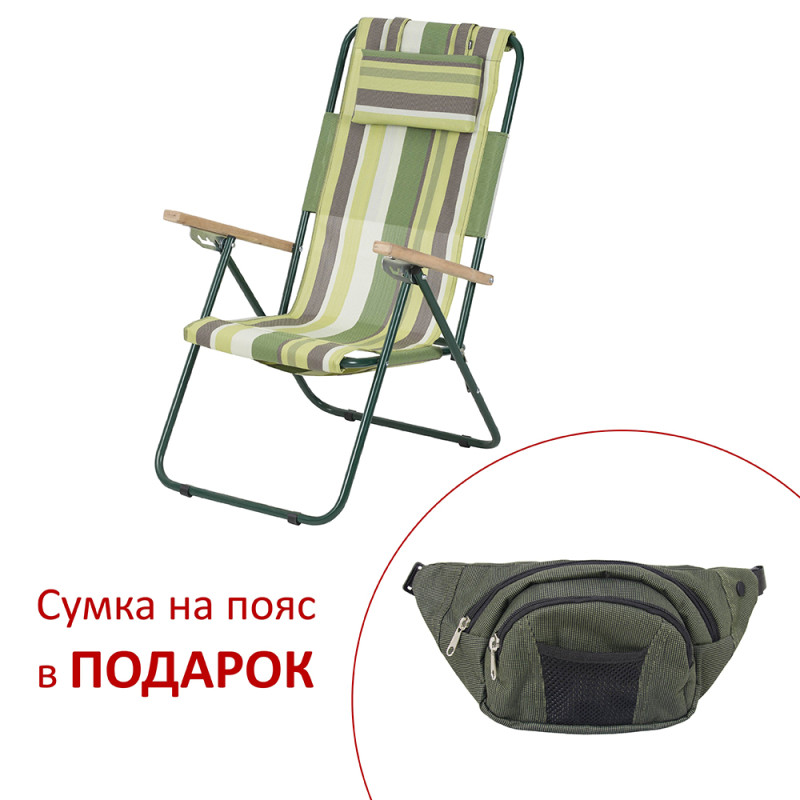 Кресло-шезлонг "Ясень" d20 мм (текстилен зеленая полоса)