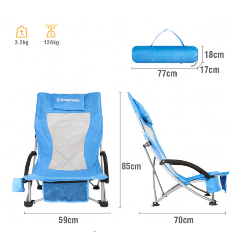 Практичне складне крісло KingCamp Beach chair призначене для любителів відпочивати на природі з комфортом.