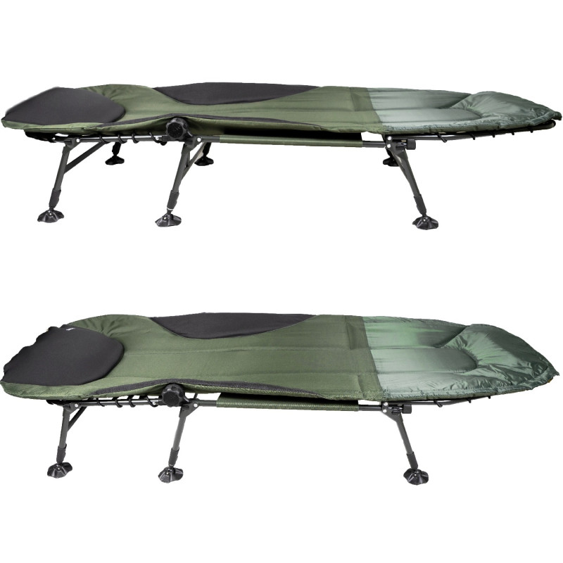 Раскладушка Ranger BED 82 – это полноценная кровать в походных условиях. Её можно установить в горизонтальном положении на неровной поверхности, подстроив каждую из шести ножек в отдельности, регулируется наклон спинки. Мощная конструкция карповой раскладушки рассчитана на большую нагрузку.Большая кровать-раскладушка выполнена из высококачественного материала. Ткань практична, не выгорает на солнце, влагонепроницаема, легко моется. Секция для ног имеет специальную тканевую вставку со способностью отталкивать грязь и воду, но все же, если вам удастся ее запачкать, то вы легко сможете удалить грязь с данного участка.Матрас с наполнителем из пены создаст вам идеальные условия для комфортного отдыха.Раскладушка-кровать Ranger BED 82 легко трансформируется в кресло. Мягкую подушку из неопрена можно при желании убирать из подголовника. Очень удобное и надёжное спальное место или кресло для отдыха на природе. Проверенная временем и полюбившаяся потребителям модель.Пятаки на ножках увеличенной площади-9 cм, большая площадь не позволяет погружаться в землю или песокХарактеристики:— рама: сталь, алюминий;— ткань: PVC 600 D;— цвет: ткань – зеленый, черный, каркас – зеленый, черный, серый;— размер в разложеном виде: 31-45х208х82 см (ВхДхШ);— размер в упаковке: 81х22х83 см (ВхГхШ);— улучшенное крепление наклона спинки;— комплектуется чехлом;— вес: 9,5 кг;— нагрузка: 160 кг.