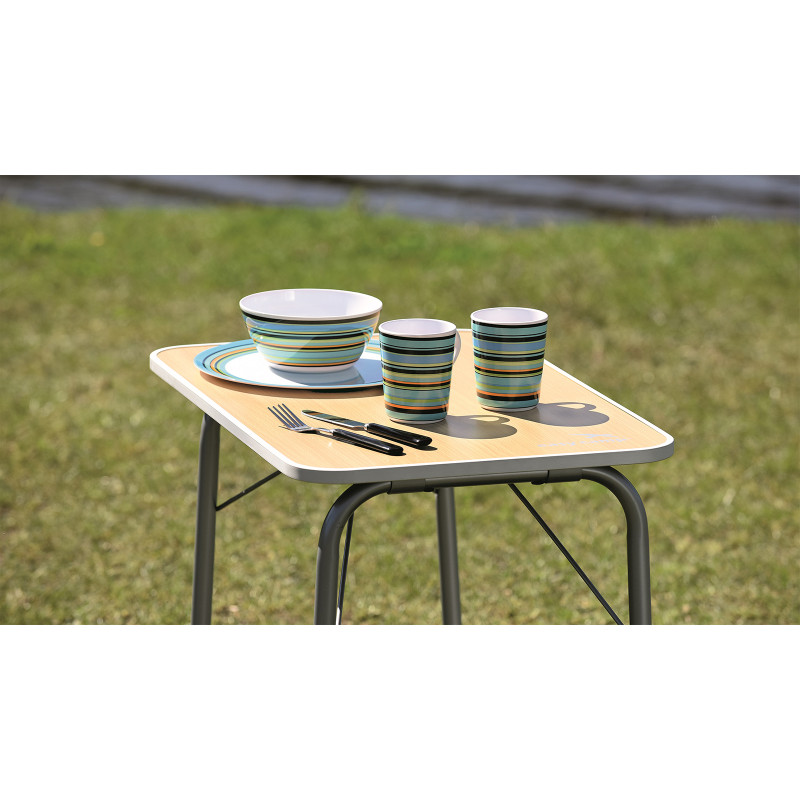 Наслаждайтесь романтическим ужином под звездным небом за раскладным столом Easy Camp Caylar, рассчитанным на двоих. Сверхпрочная стальная рама имеет четыре поперечных опоры, которые обеспечивают устойчивость в ветреный день. Так что Вам не нужно беспокоиться о погоде, портящей Ваши планы. Ламинированная столешница легко моется, но не следует оставлять стол под сильным дождем или на жарком солнце. Ножки стола складываются после использования.