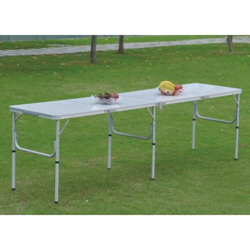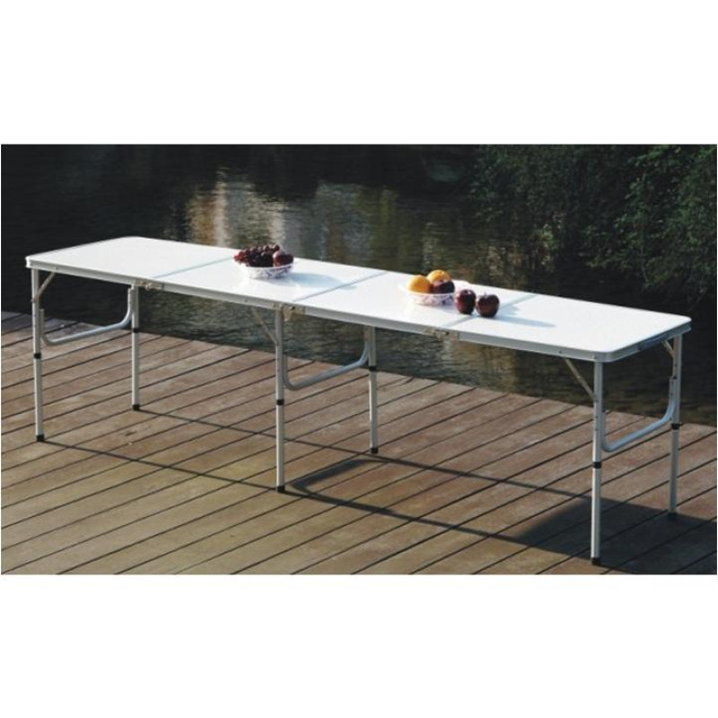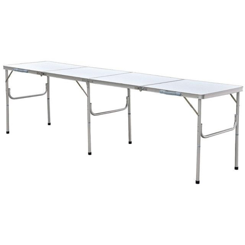 Стол складной (складываемый 4-раза) PC1824Материал — алюминий ( труба d=25 мм) Размеры: 240*60*38/70CM Вес: 10,5 кг Нагрузка: 30 кгРазмеры упаковки: 63x30.5x63