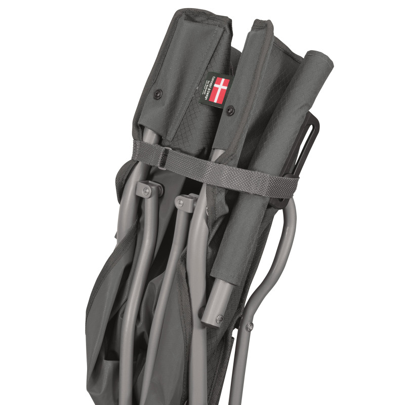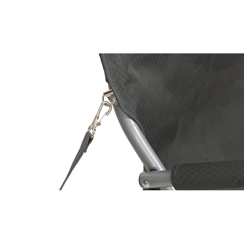 Outwell Perce Chair Charcoal (470403) - кемпинговый стул широким сиденьем, мягкими подлокотниками и съемным ремнем для переноски. Каркас изготовлен из высокопрочной стали с порошковой покраской и выдерживает нагрузку до 125 кг. Увеличенные опоры ножек повышают устойчивость на мягком грунте.