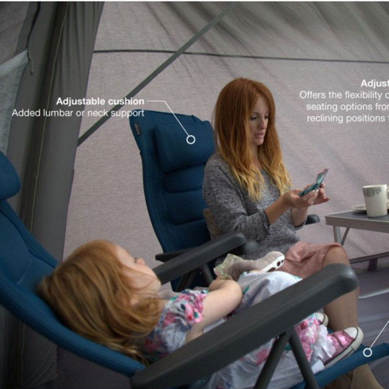Vango Hyde DLX Med Blue - это знакомая, проверенная годами конструкция каркаса кресел серии Hampton, которая облачена в совершенно новую ткань Dura-Lite™Fabric со структурой плетения AirMesh для повышенного комфорта и улучшения вентиляции. Кресло обладает мягкой спинкой с семью положениями наклона под разным углом, и съемным подголовником для дополнительной поддержки мышц шеи. Глубокая посадка кресла и возможность трансформации подголовника в поясничный валик обеспечивают дополнительный комфорт. Ножки каркаса выполнены таким образом, чтоб обеспечить хорошую устойчивость как на обустроенной площадке кемпинга, так и на траве или песке. Если Вы собираетесь хорошо отдохнуть на природе - не забудьте с собой взять кресло Vango Hyde DLX.