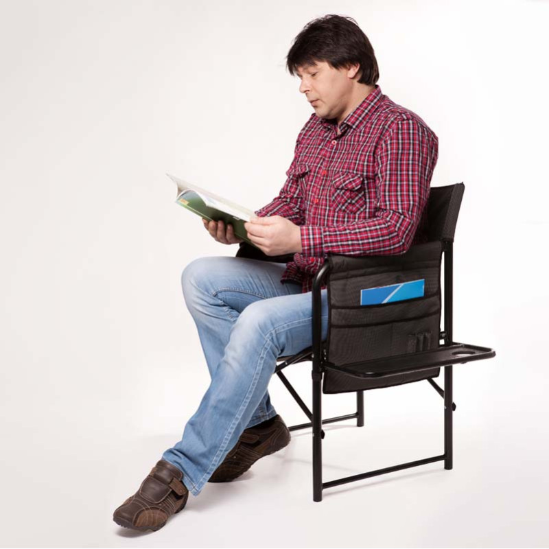 Многофункциональный стул от ТМ «Vitan» действительно отличается от своих конкурентов. Помимо современного дизайна и приемлемой цены, стул «Режиссер» получил массу преимуществ, среди которых можно отметить: прочный металлический каркас (из стальных трубок диаметром 25 мм), простоту в эксплуатации, удобное сиденье из ткани в два слоя, а также наличие дополнительной полки с подстаканником и несколькими карманами, которые находиться под подлокотниками.