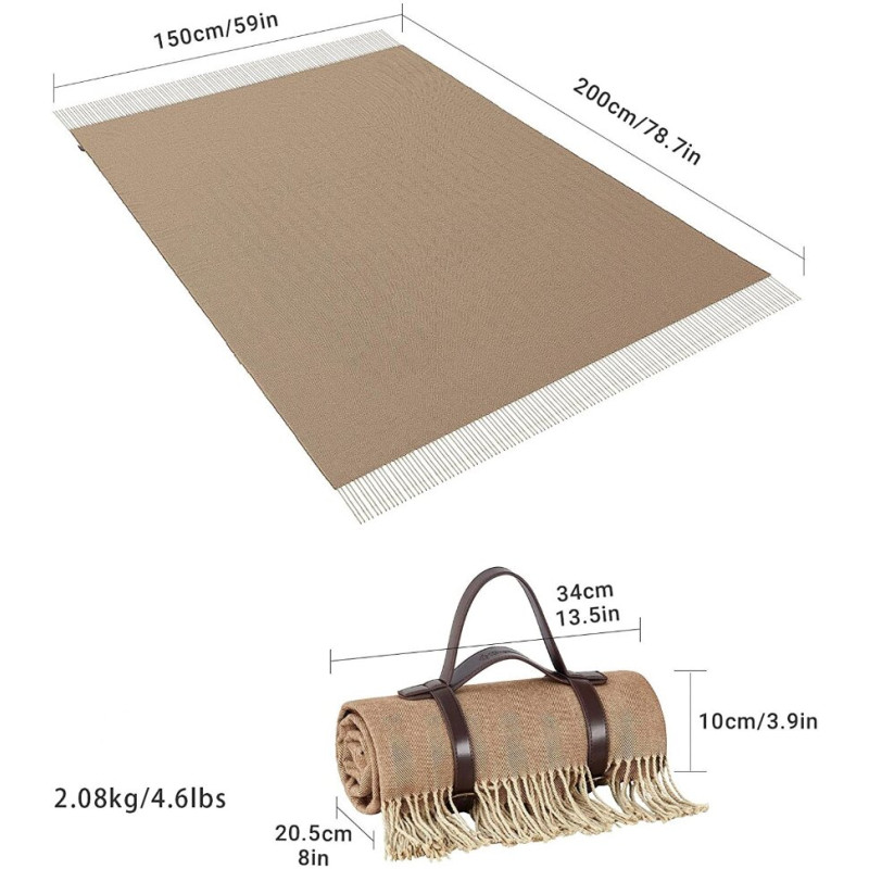 Велика ковдра для пікніка 200 x 150 см, складена всього 37 на 20 см з шкіряними ручками, зручна для перенесення і транспортування. Його також можна прати в пральній машині.