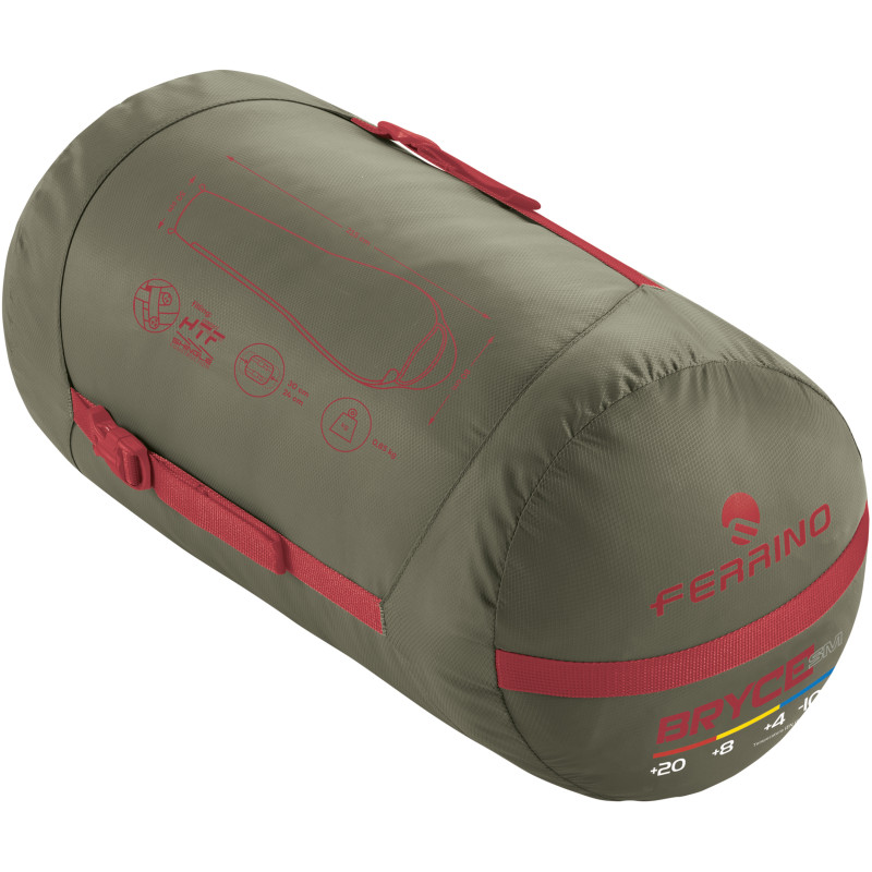 Ferrino Bryce SM/+7°C Green Left (86375MVV) - перші екологічно чисті спальні мішки Ferrino, виготовлені з перероблених тканин і наповнювачів Repreve®. Для виготовлення кожного мішка використовується близько тридцяти півлітрових ПЕТ-пляшок. Рекомендується для трисезонних походів.