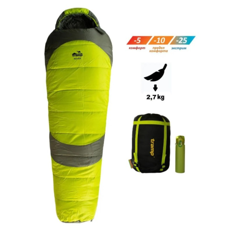 Опис спального мішка Tramp Rover Long кокон правий оливковий /сірий 230/90-55 TRS-050L-R: