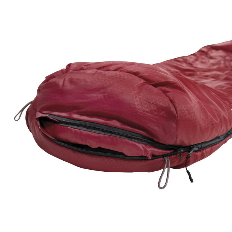 High Peak Redwood L/-3°C Dark Red/Grey Left (23092) - высококачественный функциональный трехсезонный спальный мешок, выполненный в форме кокона с компрессионным чехлом в комплекте. Мягкая внешняя оболочка не содержит PFC-соединений, имеет водо- и грязеотталкивающую пропитку, выполненную по экологически чистой технологии Bionic-Finish® Eco. Внутренняя подкладка спальника дышащая и приятна для кожи. Спальный мешок имеет высококачественный синтетический наполнитель Dura Loft® H4 с превосходными теплоизоляционными характеристиками. Данный материал легко сжимается, долговечен, сохраняет тепло даже во влажных условиях и быстро сохнет. Спальный мешок High Peak Redwood L/-3°C Dark Red/Grey Left (23092) оснащен трехмерным регулируемым капюшоном, который согревает голову и плечи в ночное время, а карман для подушки обеспечивает дополнительный комфорт. Двусторонняя молния позволяет расстегнуть нижнюю часть спальника для циркуляции воздуха, если вдруг станет жарко. Защита от заедания молнии предотвращает зацеп молнии за подкладку, а функция автоматической блокировки предотвращает раскрытие спального мешка во время сна. Молния закрыта ветрозащитной перегородкой, а застежка имеет эргономичную форму для удобного хвата рукой. Внутренний карман с застежкой на липучке обеспечивает удобное хранение ценных вещей. Спальный мешок рассчитан на рост пользователя до 190 см, предназначен для активного кемпинга, альпинизма, летних походов и путешествий. Рекомендуется машинная стирка при температуре 30°C.