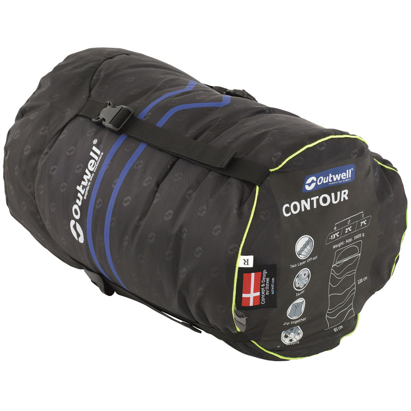 В данной модели применена технология Outwell Reversible, которая объединяет свойства двух спальных мешков с различными температурными характеристиками в одном. Нужно просто перевернуть спальный мешок необходимой стороной вверх и использовать его или в теплую погоду, или в холодную. Спальные мешки Outwell Contour Reversible имеют как правостороннюю, так и левостороннюю молнию, которая позволяет объединить два односпальных мешка в один просторный двуспальный, а также полностью расстегнуть мешок и использовать его как одеяло. Подголовник с мягкой интегрированной подушкой имеет молнию и может отстегиваться совсем или пристегиваться к нужной стороне мешка. Цвет спального мешка немаркий и как нельзя лучше подходит для условий кемпинга. Вместе с тем специальные петли позволяют надежно зафиксировать внутри тонкий текстильный вкладыш, который обеспечит чистоту и необходимую гигиену на природе. Спальный мешок Outwell Contour Reversible соответствует международному стандарту DIN EN ISO 23537, который нормирует требования к размерам и тепловым характеристикам спальных мешков, а также к свойствам ткани и используемым материалам. Обратите внимание, что только сертифицированные спальные мешки соответствуют заявленным температурным режимам и гарантируют Вам тепло и комфорт продолжительное время, не смотря на холод и сырость.